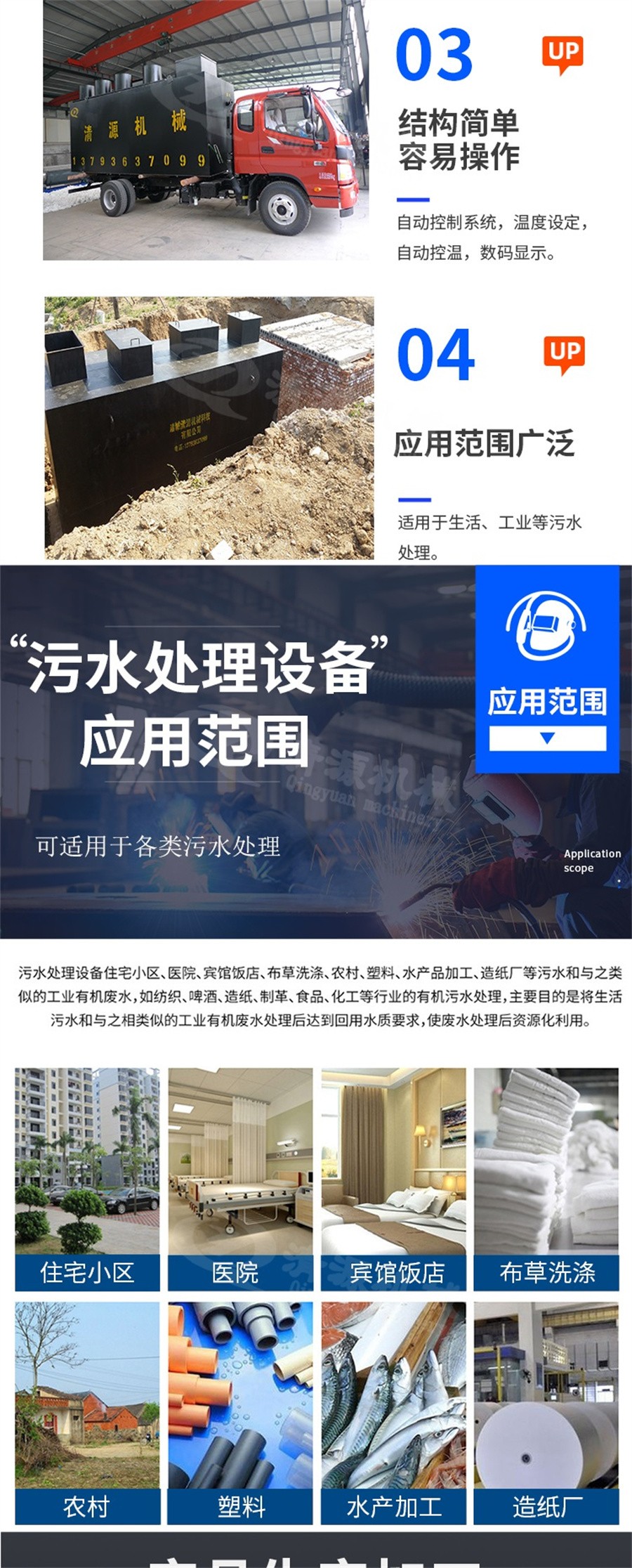 此外,我公司不僅生產(chǎn)景區(qū)污水處理設備,還生產(chǎn)酒店生活污水處理設備、氣浮機、污泥壓濾機、刮吸泥機、造紙設備等其他環(huán)保設備。