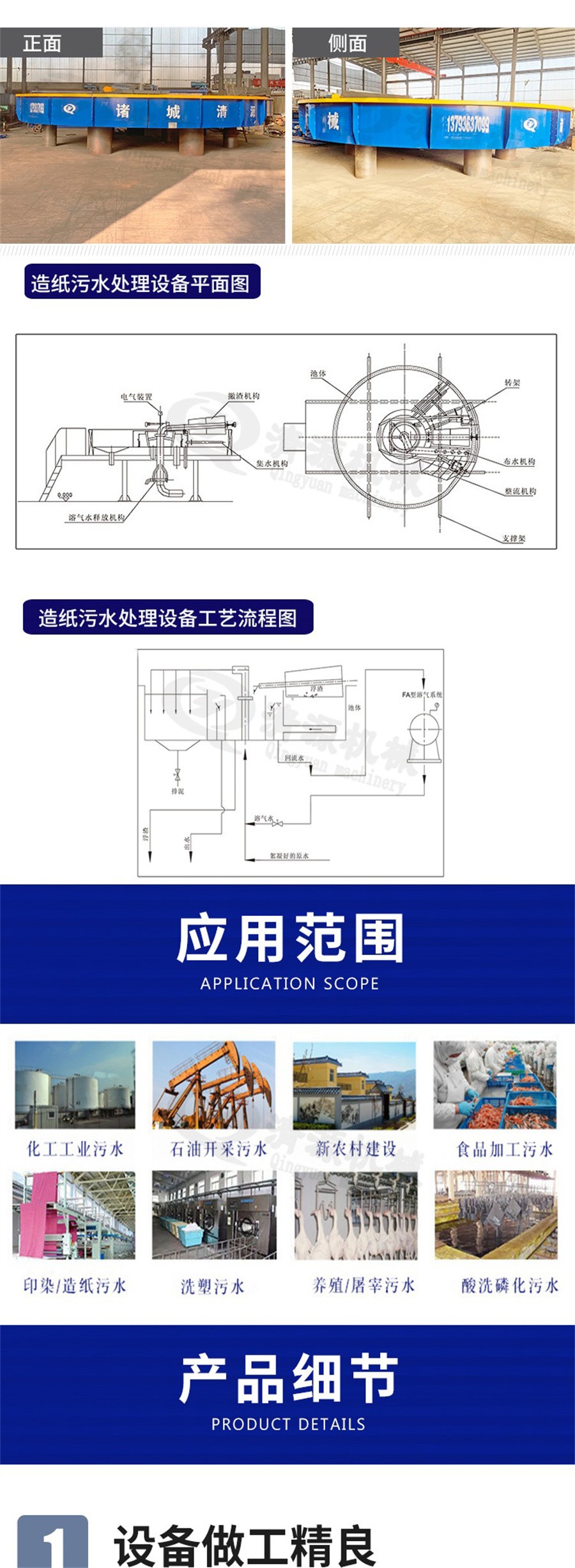 四、應(yīng)用范圍:該設(shè)備以先進(jìn)的設(shè)計(jì),優(yōu)良的性能,廣泛應(yīng)用于石油、化工、鋼鐵、制革、電力、紡織、食品、釀造、市政等行業(yè)的污水處理系統(tǒng),是傳統(tǒng)氣浮設(shè)備的替代產(chǎn)品。