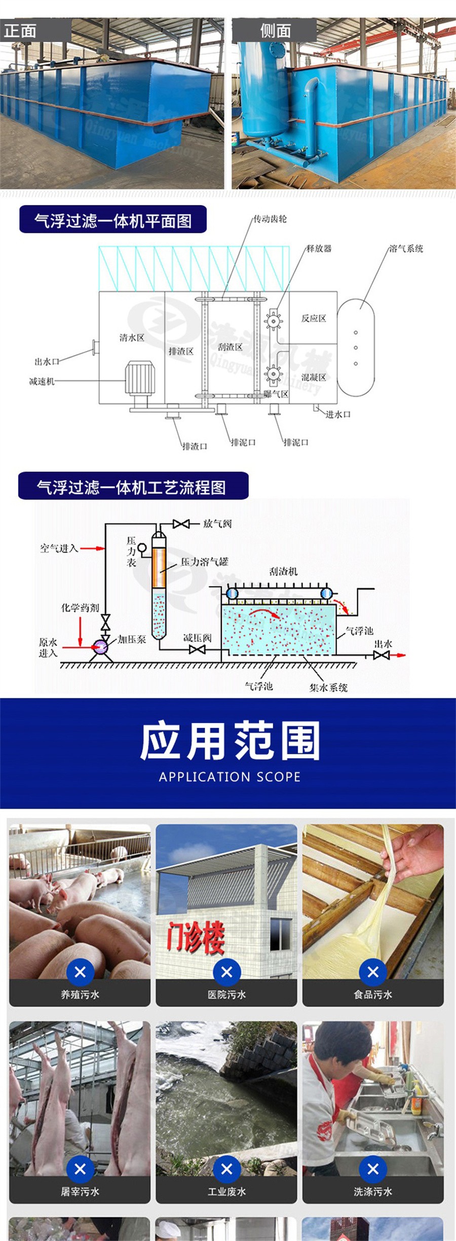 氣浮過濾一體機(jī)主要適用于處理廢水經(jīng)反應(yīng)后絮體比重接近于水的各類廢水,氣浮過濾一體機(jī)廣泛應(yīng)用于機(jī)械、化工、輕紡、交通、食品等行業(yè),特別適用于油田鉆井污水、油田回注水、煉油廠污水的處理。本機(jī)主要處理工藝采用物理化學(xué)法。將化學(xué)法、氣浮法、過濾吸附法等傳統(tǒng)成熟工藝經(jīng)過有機(jī)組合設(shè)計(jì)而成。具有工藝簡單合理、適應(yīng)性廣、結(jié)構(gòu)緊湊、運(yùn)輸安裝方便、操作簡便、性能穩(wěn)定可靠的特點(diǎn)。對(duì)油水分離,懸浮物、COD、BOD的去除有很好的效果,一般廢水經(jīng)處理后都能達(dá)到排放標(biāo)準(zhǔn)。