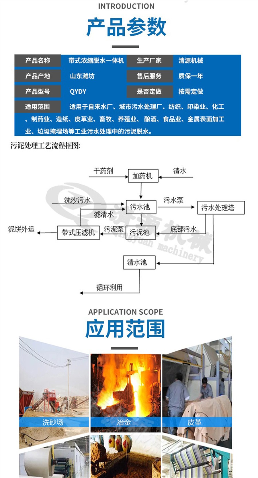 三、應(yīng)用范圍:適用于自來水廠、城市污水處理廠、紡織、印染業(yè)、化工、制藥業(yè)、造紙、皮革業(yè)、畜牧、養(yǎng)殖業(yè)、 釀酒、食品業(yè)、金屬表面加工業(yè)、垃圾掩埋場等工業(yè)污水處理中的污泥脫水。