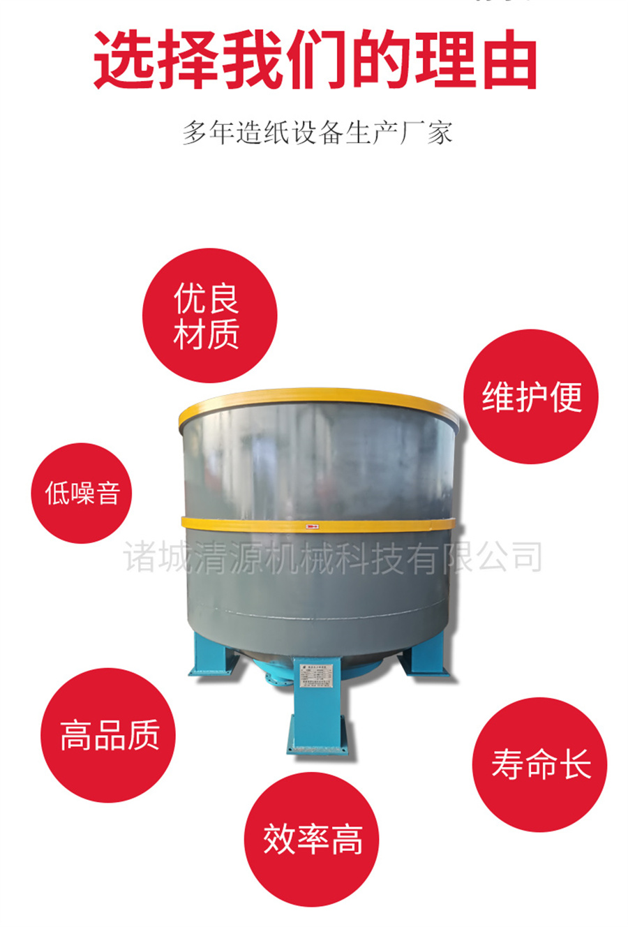 立式水力碎漿機(jī):主要結(jié)構(gòu)有槽體、轉(zhuǎn)子(葉輪)、底環(huán)和電機(jī)等。一般轉(zhuǎn)盤的圓周速度為1000m/min,槽體直徑為1-6m。我國目前水力碎漿機(jī)的容積有1-30立方等多種型號(hào)。