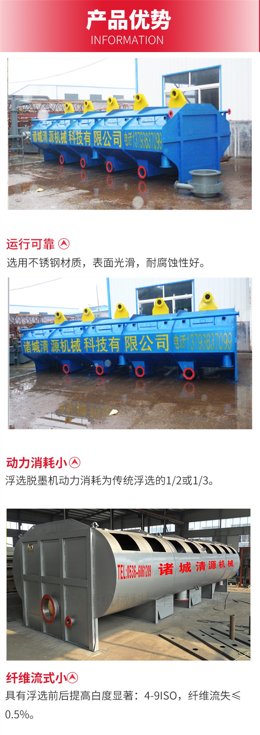 分離油墨能力強:可去除較大顆粒油墨、膠粘物(5-500um)。