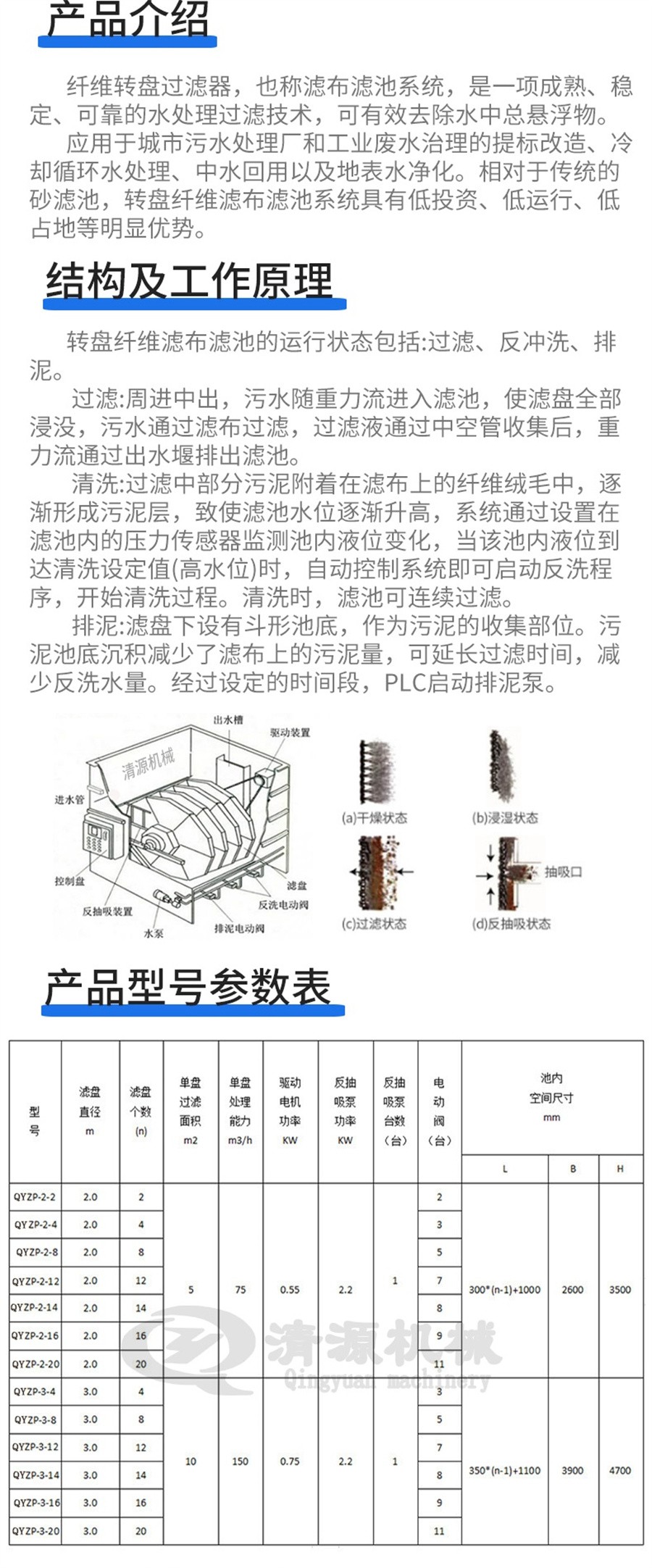 諸城清源機(jī)械科技有限公司纖維轉(zhuǎn)盤(pán)過(guò)濾器特點(diǎn):